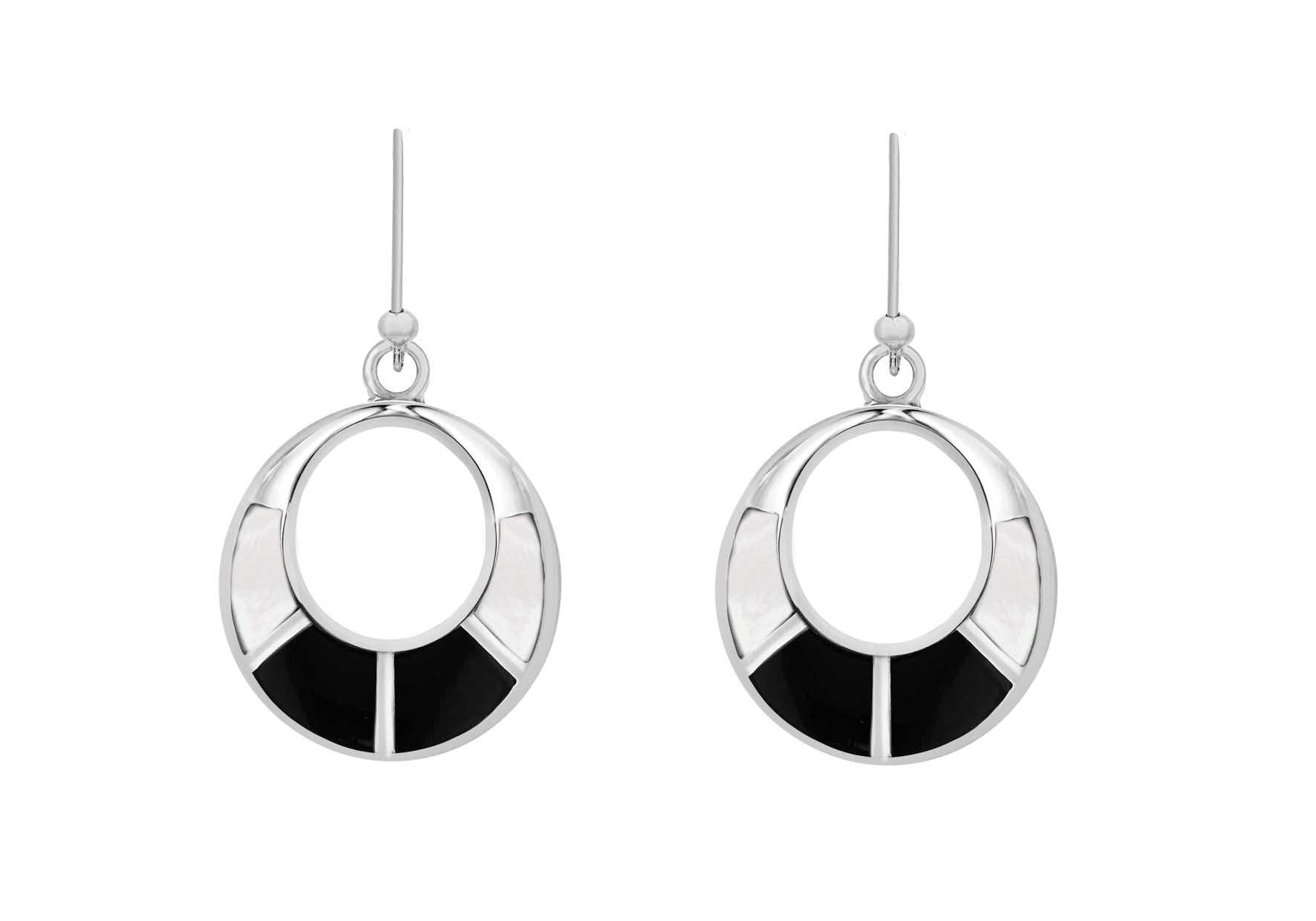 Sterling Silver Mother of Pearl and Onyx Cutout Drop Earrings Width: 17mm; Height: 24mm; Fitting: Hook; Style: Drop Metal Colour: Silver Metal: Silver