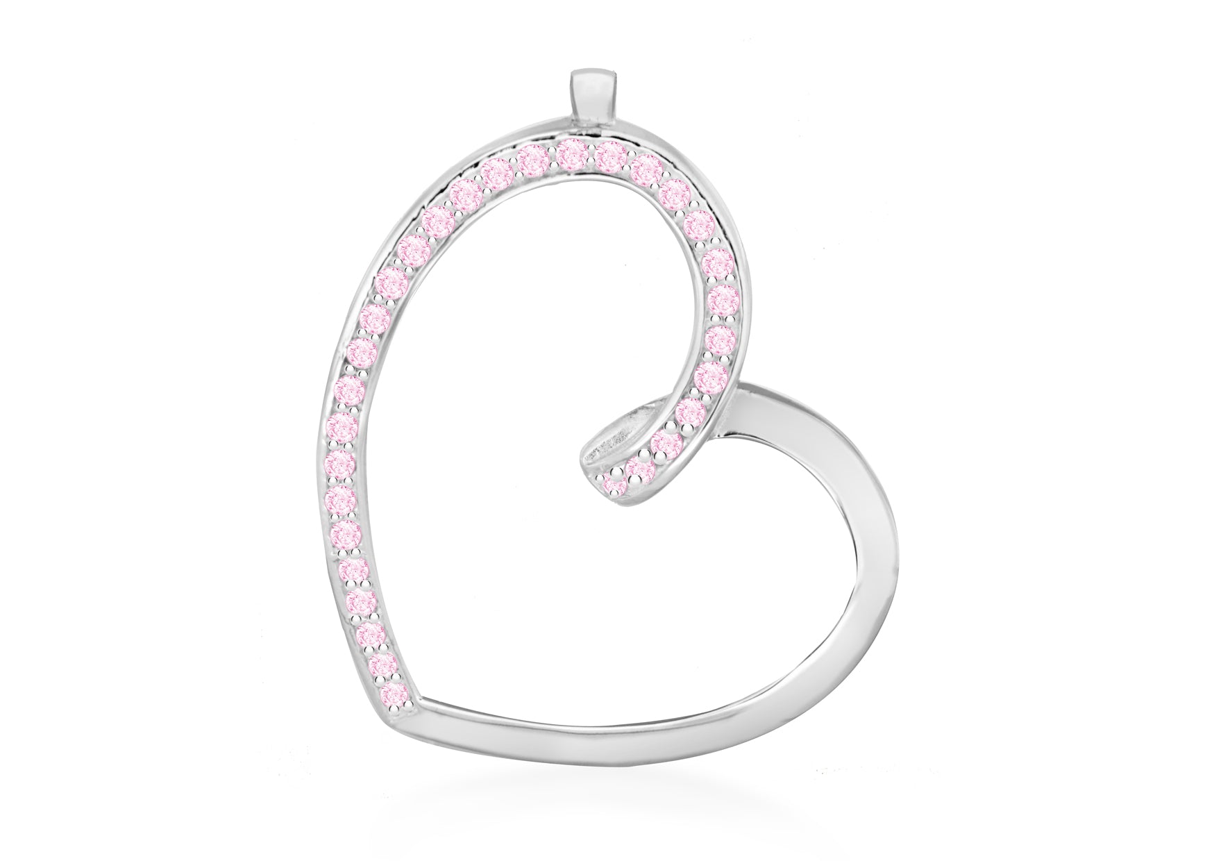 Sterling Silver Pink Zirconia Open Fickle Heart Slider Pendant Height: Including Bail 32mm; Pendant Width: 27mm; Setting: Claw; Stone Details: 2mm Pink CZ Stones; Style: Plain Metal Colour: Silver Metal: Silver