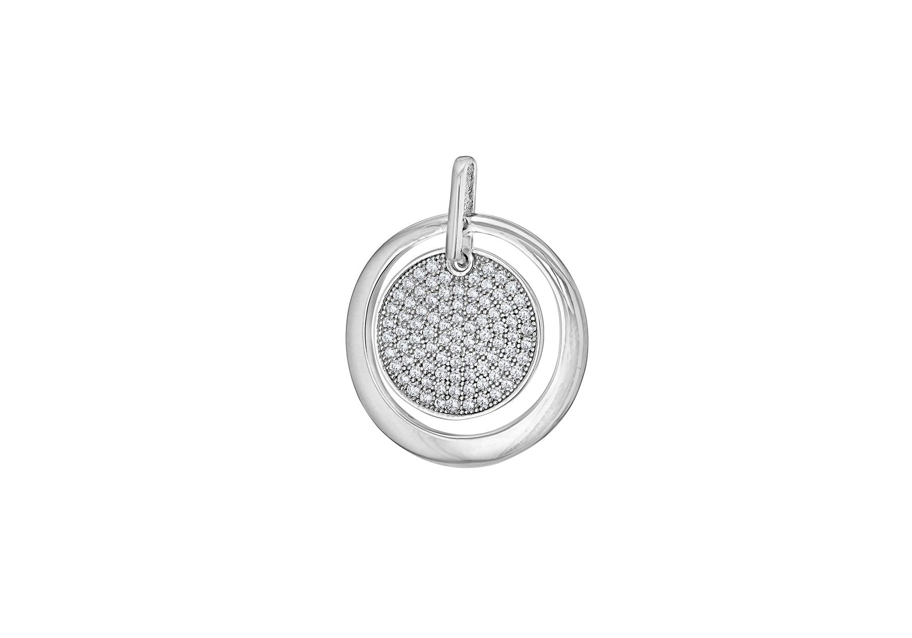 Pendant Height: Including Bail 24mm Pendant Width: 19.7mm Finish: Rhodium Plated Setting: Pave Stone Details: 86 x 0.8mm Round White CZ Style: Stone Set Product Type: Pendants Metal Colour: Rhodium Metal: Silver: 18"inch Chain Included
